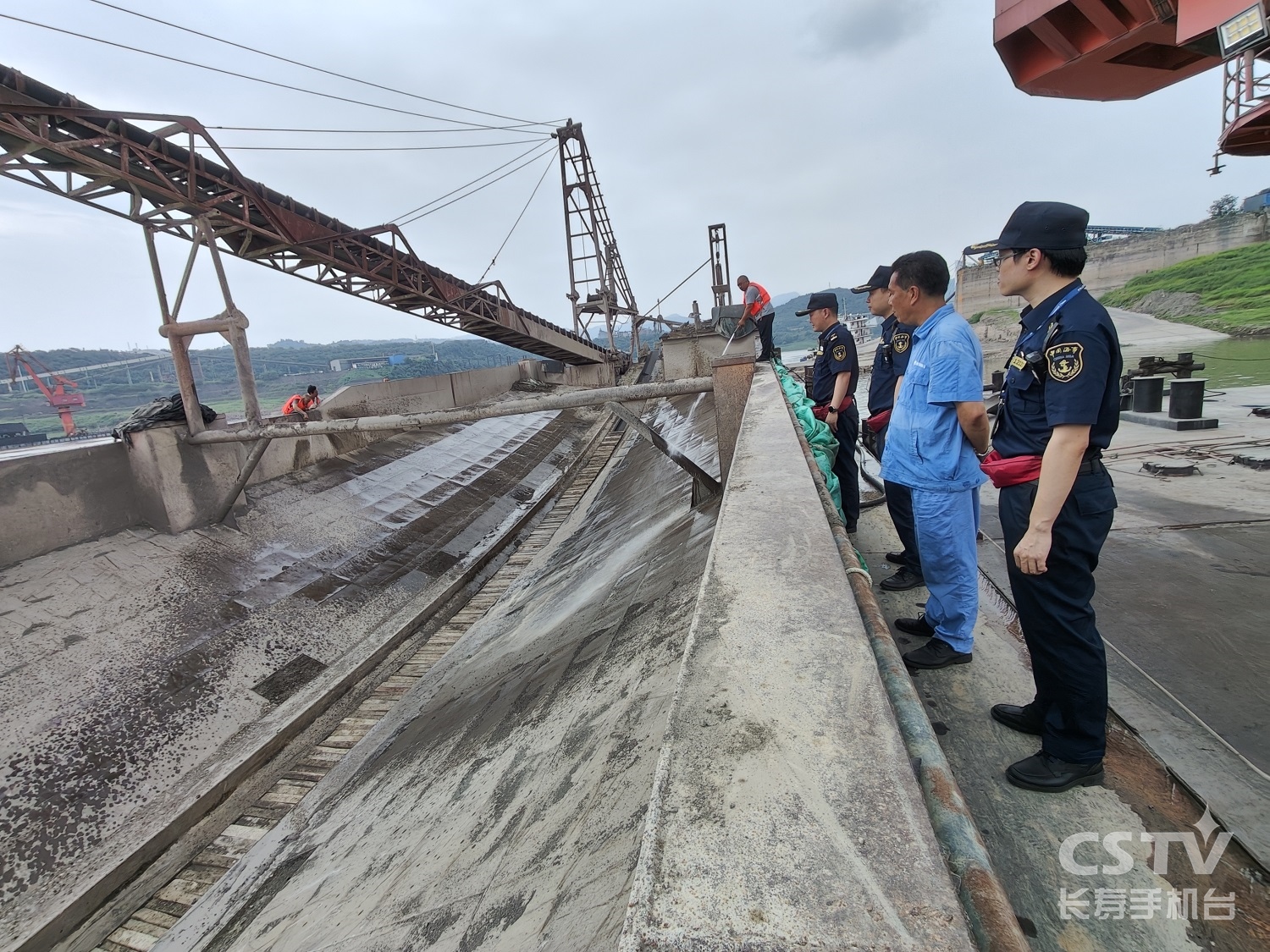 长寿港区首艘散货船洗舱水上岸